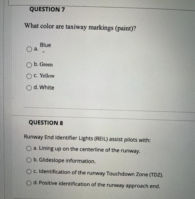 Solved Question 7 What Color Are Taxiway Markings Paint Chegg Com
